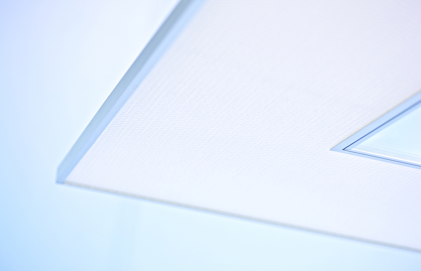 AIR-board Acoustic translucent honeycomb panels, utilized as backlit baffles, offer a dual benefit in room design – they significantly reduce reverberation while enhancing the room's lighting. These panels excel in absorbing sound, effectively minimizing echoes and improving overall acoustic quality. The ability to backlight these panels transforms them into a source of ambient lighting, softening and enriching the room's atmosphere. This feature not only adds functional illumination but also creates a captivating visual effect, elevating the aesthetic appeal of the room. Combining sound absorption with decorative lighting, these panels are a striking, multifunctional solution for any space.