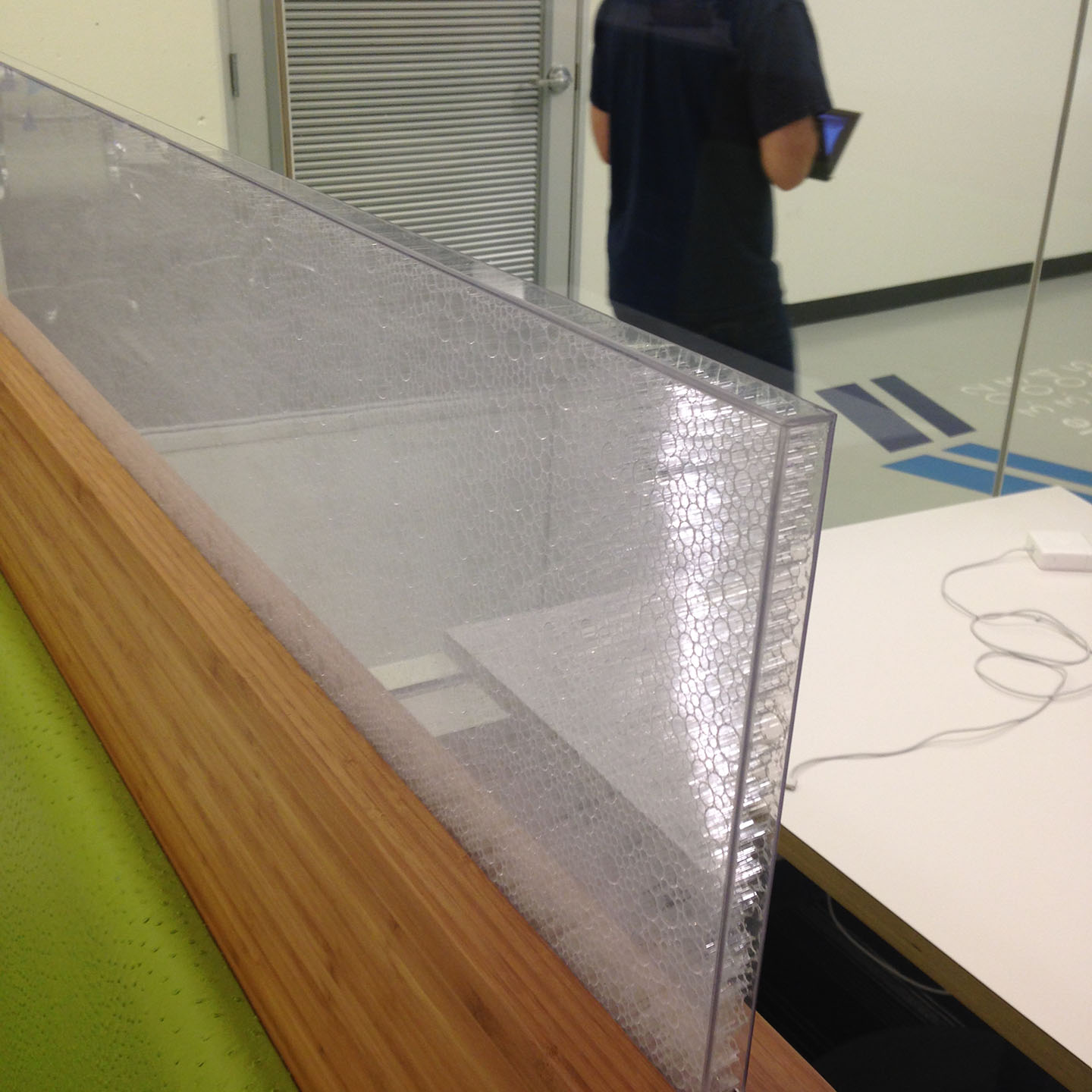 clear-PEP panels, while not initially designed for acoustic dampening, have been ingeniously utilized to construct a futuristic audio lounge. Their aesthetic appeal provides a visually stunning showcase, perfectly complementing the cutting-edge technology and design of the lounge. The high-quality construction of these panels guarantees that their sleek, modern look is preserved over time, ensuring the lounge remains at the forefront of design trends. This innovative use of clear-PEP panels not only enhances the lounge's visual appeal but also underscores the creative potential of combining functionality with futuristic aesthetics.